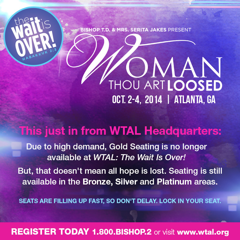 According to an email, Gold seating is no longer available at the “Woman Thou Art Loosed” conference in Atlanta GA, beginning October 2-4th.