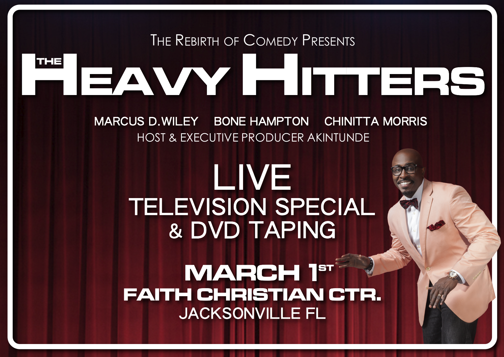 Comedian, Writer and Producer Akintunde is set to roll cameras on a new television special and DVD series, The Rebirth Of Comedy Presents: The Heavy Hitters on March 1st 2014 in Jacksonville Florida at Faith Christian Center (Senior Pastor George L. Davis). Read the full post »